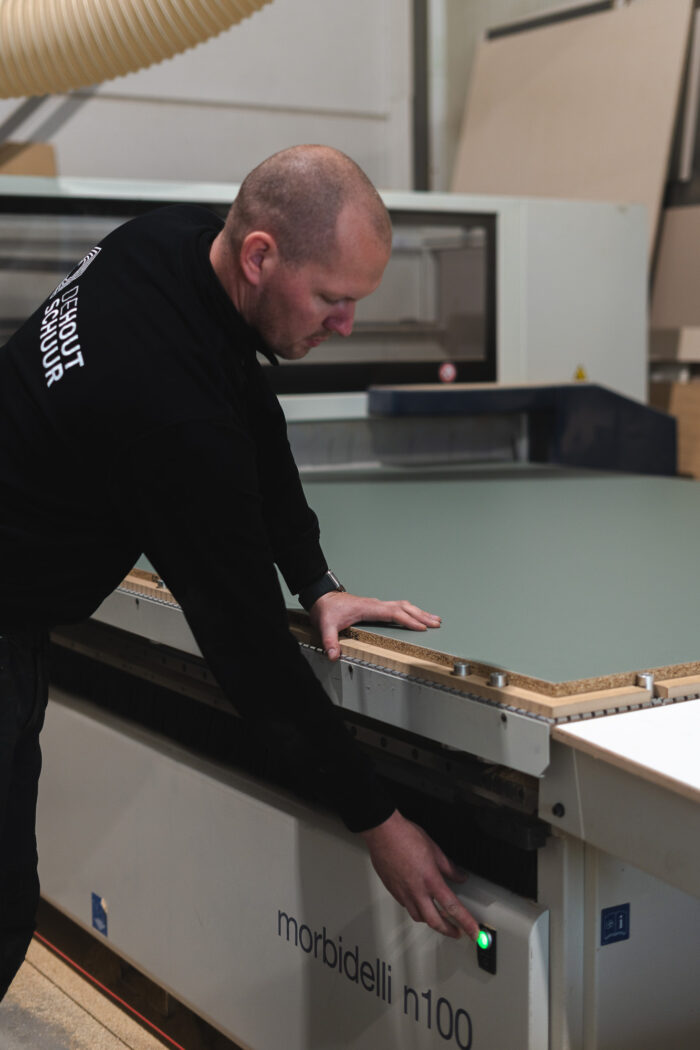 Niet alleen wordt ik hier ingevlogen om mijn expertise te delen, maar ook kom ik hier elke maand terug. De stand van zaken toen ik hier begon versus hoe het nu is, is een wereld van verschil. We hebben in kaart gebracht wat de wensen waren en zijn hier steady in gaan opbouwen. Bij De Houtschuur worden projecten gemaakt in samenwerking met interieurbouwers en professionals. Als CNC-specialist weet Bram als geen ander hoe je mooie onderdelen voor maatwerk meubels maakt die de interieur professional voor zijn project als kant en klaar pakket aangeleverd krijgt.